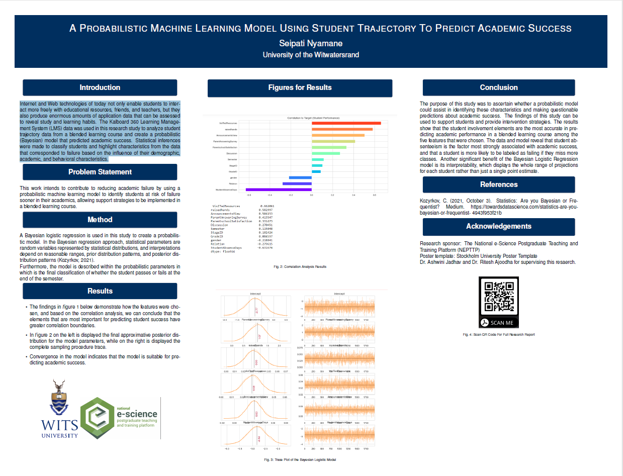 Internet and Web technologies of today not only enable students to interact more freely with educational resources, friends, and teachers, but they also produce enormous amounts of application data that can be assessed to reveal study and learning habits. The Kalboard 360 Learning Management System (LMS) data was used in this research study to analyze student trajectory data from a blended learning course and create a probabilistic (Bayesian) model that predicted academic success. Statistical inferences were made to classify students and highlight characteristics from the data that corresponded to failure based on the influence of their demographic, academic, and behavioral characteristics.